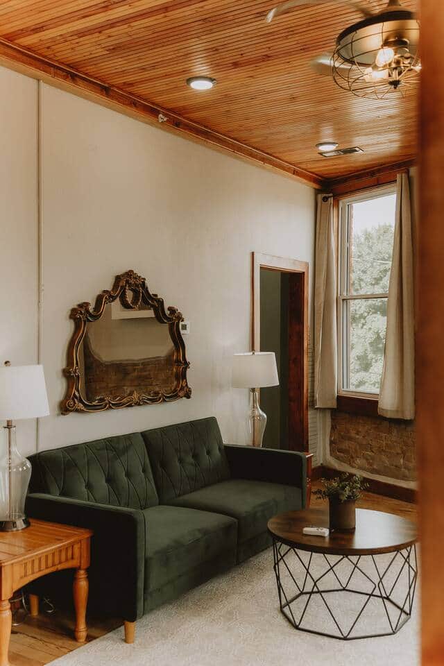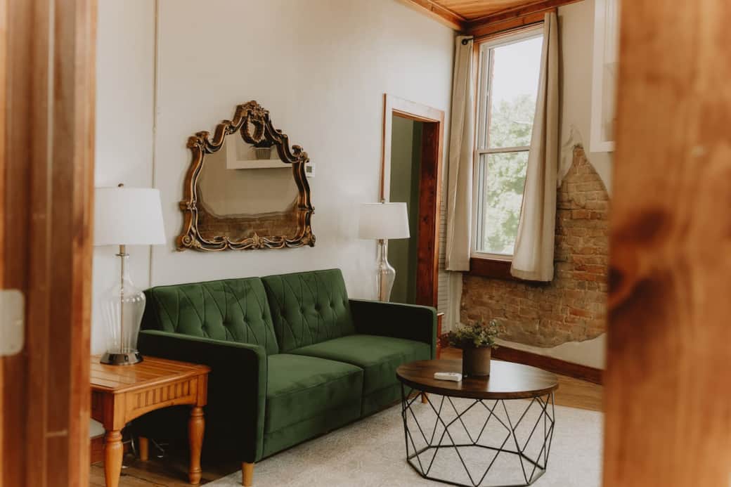 The Alabaster Loft at The Heritage Hotel is close to everything, making it the perfect place to stay! Walking distance to Current River, steps from restaurants, a downtown bar, art studio, museum, park, boutiques, thrift stores & more. Our 7 unit boutique hotel is overlooking Heritage Park and historic Downtown Doniphan. Room service available or make your own meals in our well stocked kitchen. During the Summer months enjoy live music in the park on select nights, just outside your windows! Primary room has 1 king bed, 1 single pull out sleeper. Second bedroom has one queen & one twin. Third room has twin bunks. Living room has a full futon.