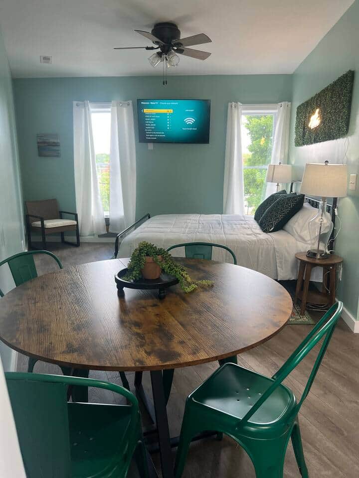 Emerald Suite at The Heritage Hotel is close to everything, making it a great place to stay. We are walking distance to Current River, steps from restaurants, a downtown bar, art studio, museum, park, boutiques, thrift stores & more. Our 7 unit boutique hotel is overlooking Heritage Park and historic Downtown Doniphan. Room service available or make your own meals in our well stocked kitchen. During the Summer months enjoy live music in the park on select nights, just outside your windows!